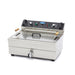 Bereid je grote hoeveelheden voedsel in je professionele keuken? Deze extra grote frituurpan met een inhoud van 20 liter is een welkome aanvulling in de bakkerij, viszaak, oliebollenkraam en andere horecakeuken. Klanten worden op hun wenken bediend en hoeven niet te wachten terwijl jij vakkundig grote porties oliebollen, vis, frites en hapjes frituurt. Deze professionele frituurpan is voorzien van twee verwarmingselementen die in te stellen zijn met de instelbare thermostaat. Zo kies je een gewenste temperatuur tussen de 50 °C en 200 °C. Ook is deze friteuse voorzien van handig indicatielampje om aan te geven wanneer de olie gereed is. De elektrische horeca friteuse werkt op krachtstroom.
