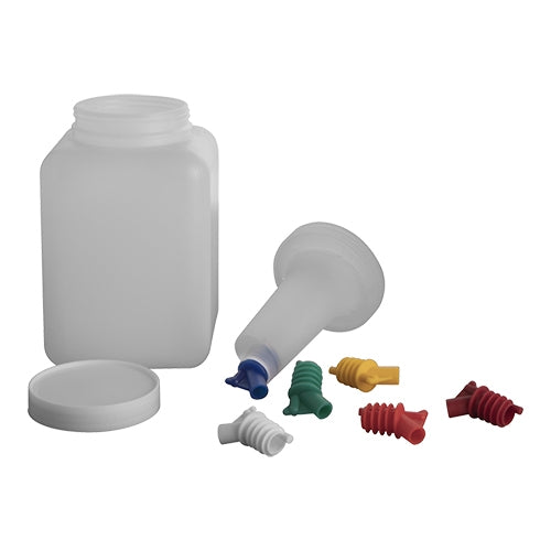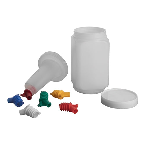 Bedoeld voor het bewaren en serveren van sappen en pre-mixen.Geleverd met 5 gekleurde tuiten, rood, blauw, groen, oranje, geel.Gemaakt van polyprop...