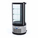 Deze luxe afgewerkte ronde gebaksvitrine met een inhoud van 100 liter is een aanwinst voor je bakkerij, restaurant of horecazaak. De koelvitrine bevat gebogen ruiten rondom en drie glazen plateaus die in hoogte verstelbaar zijn. In combinatie met de energiezuinige LED-verlichting aan de binnenzijde staan taarten, gebak en hapjes letterlijk in de schijnwerpers. De achterkant van de ronde koeler beschikt over een hoge klapdeur om klanten en gasten snel en makkelijk te bedienen en producten bij te vullen.