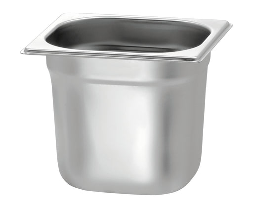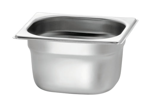 Uitvoering;Zonder perforatie Norm;EN 631 Serie;Basic Line Materiaal;Chroomnikkelstaal Gastronorm;1/9 GN Inhoud;0.6 liter Stapelbaar;Ja Oppervlak;Z...