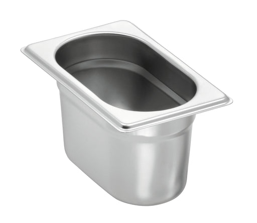 Uitvoering;Zonder perforatie Norm;EN 631 Serie;Basic Line Materiaal;Chroomnikkelstaal Gastronorm;1/9 GN Inhoud;0.6 liter Stapelbaar;Ja Oppervlak;Z...
