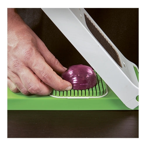 Ontdek de groente-snijder, uw nieuwe geheim in de professionele keuken. Deze snijder maakt het eenvoudig om uw groenten en fruit in perfecte blokj...