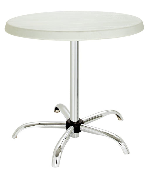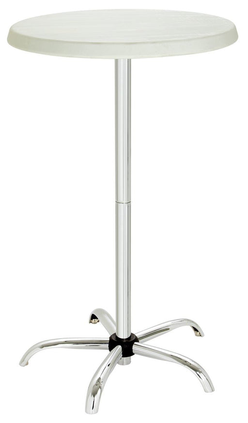 Diameter tafelblad;700 mm Eigenschappen;Vlekbestendig ,Insteeksysteem Kleur;Wit ,Zilver Hoogte tafelblad;675 mm ,1.170 mm Materiaal voeten;Verchro...