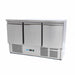 Het voordeel van een koelwerkbank is dat je niet alleen beschikt over een koeling maar ook over een werktafel met een volledig RVS-werkblad voor het werken met verse ingrediënten. Dit koelsysteem met ventilator heeft een capaciteit van 218 liter. Achter de drie robuuste RVS-deuren bevinden zich twee verstelbare roosters.