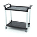 Deze serveerwagen kan je veel loop- en tilwerk besparen omdat je de serveerwagen het werk laat doen. Hij is ideaal voor het vervoeren en serveren van maaltijden. De serveerwagen is ook een uitstekende hulp bij het opruimen van vuile vaat in de keuken. Deze professionele serveerwagen is voorzien van twee kunststof werkbladen.