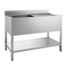 Met het moduleerbare ontwerp kunt u de spoeltafel eenvoudig aanpassen aan uw specifieke behoeften, waardoor deze perfect is voor restaurants, cafés en cateringbedrijven. De links geplaatste bodemschappen bieden extra opbergruimte voor al uw keukengerei en ingrediënten.