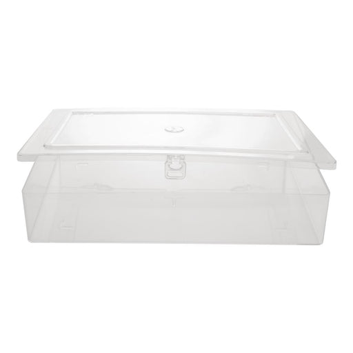 Stevige, stapelbare transparante bewaardoos voor bonbons, gemaakt van polystyreen. Met goed sluitende klip. Ideaal voor transport en opslag.