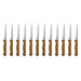 Deze set bestaat uit 12 stuks en is ontworpen voor de echte steakliefhebber. Elk mes is voorzien van een gekarteld 18/0 RVS lemmet dat moeiteloos door elke soort vlees snijdt. Of u nu een sappige biefstuk of een malse kip bereidt, met deze messen geniet u van precisie en controle in elke snede.