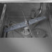 Stationaire kunststof wasarmen en roterende RVS spoelarmen aan de bovenzijde van de kamer.
