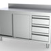 Deze werktafel is voorzien van schuifdeuren die moeiteloos openen en sluiten, waardoor u eenvoudig toegang heeft tot uw gereedschap en materialen. De laden aan de rechterkant bieden extra opbergruimte voor alle essentiële items, zodat u altijd georganiseerd kunt blijven.