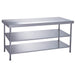 Deze RVS werktafel is ontworpen met oog voor duurzamheid en onderhoudsgemak. De volledig gelaste constructie garandeert een lange levensduur, terwijl het roestvrijstalen materiaal eenvoudig te reinigen is, wat essentieel is in een drukke horecaomgeving.