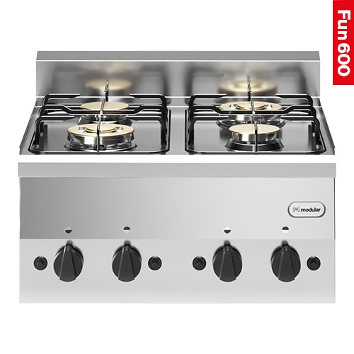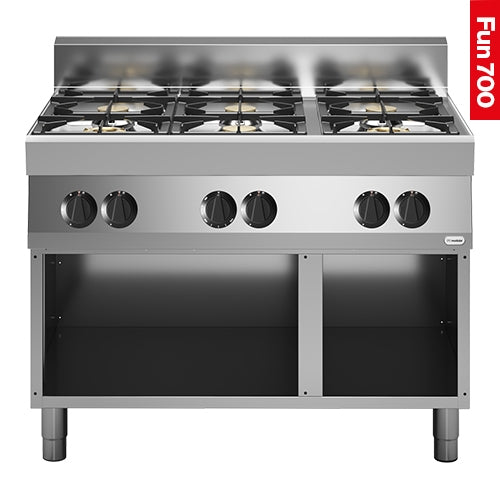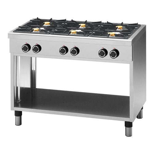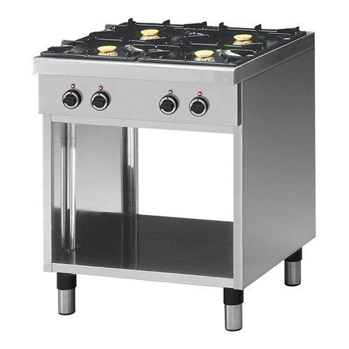 completely stainless steel version with open base, equipped with enamelled spill pans, copper burners, thermocouple and pilot light, standard versi...
