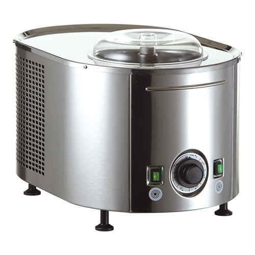 with digital controls for setting the timer and selecting choice programs for making ice cream, sorbets, frozen yoghurt, chilled drinks and yoghurt...