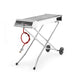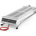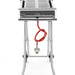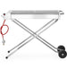 This stainless steel power grill with a folding base is easy to move thanks to the two wheels and is a compact flat package during transport.