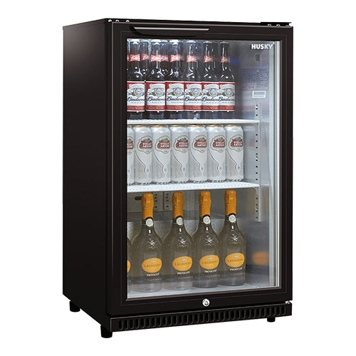 black, powder-coated sheet steel for cooling bottles and cans, temperature digitally adjustable from +2°C / +10°C, with fan for air circulation, in...