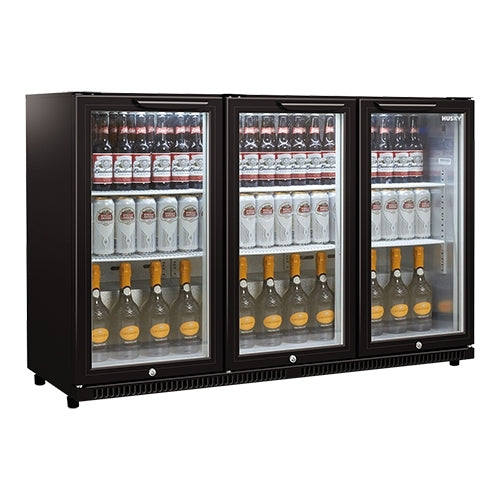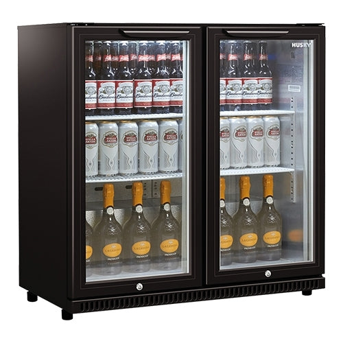 black, powder-coated sheet steel for cooling bottles and cans, temperature digitally adjustable from +2°C / +10°C, with fan for air circulation, i...