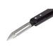 Dubbelzijdig RVS mes met rosewood handvat.