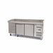 Op zoek naar een professioneel gekoelde pizzawerkbank voorzien van een koeling en handige lades om pizzadeeg in te laten rijzen? Deze pizzatafel met luxe design is onmisbaar in de professionele horecakeuken. De RVS-constructie is voorzien van een groot granieten werkblad met veel ruimte voor het uitrollen en beleggen van pizzabodems.