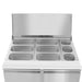 With stainless steel hinged lid which provides access to space for 2x GN1/1 and 3x GN1/6 containers with a maximum height of 150 mm.