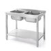 2 sinks (400x400x(H)250 mm), each pressed from a single sheet of stainless steel, seamlessly welded into the worktop.