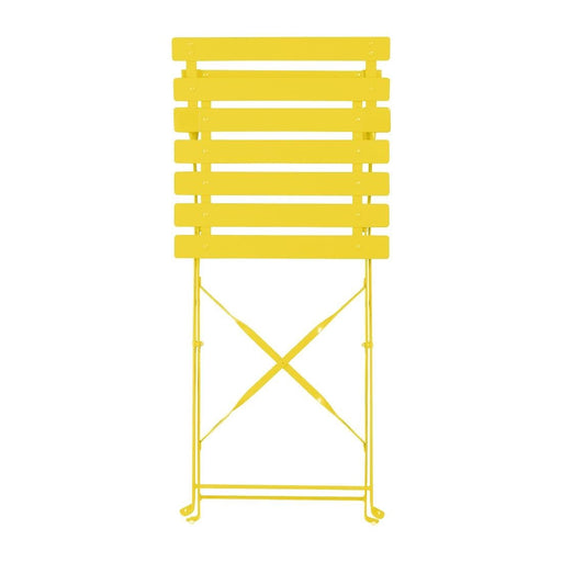 Maak kennis met de Bolero Perth zachtgele trottoirstijl stalen inklapbare stoelen (2 stuks) - een perfecte mix van stijl, comfort en functionalite...