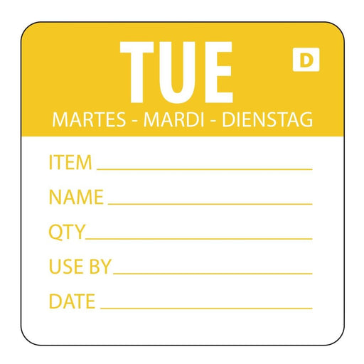 Maak uw voedselvoorraadbeheer eenvoudiger met de Hygiplas voedseletiketten kleurcode dinsdag (500 stuks). Deze innovatieve kleurcodering dagsticke...
